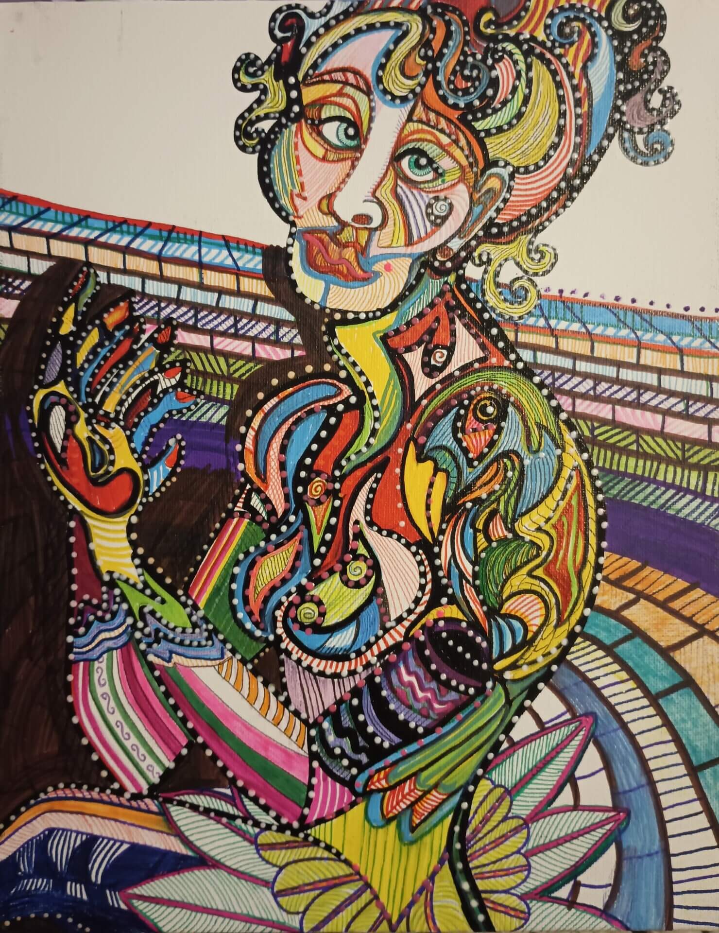 Susan Martin is a mixed media artist whose colorful, imaginative work reflects resilience and creative joy. Living with multiple health challenges, art has long been a lifeline—offering relief, focus, and freedom of imagination. Vibrant color, layered forms, and whimsical figures populate each piece, creating worlds where energy and hope take shape. Art provides a way to release emotion and regain balance, transforming hardship into expression. Susan values Art of Possibilities as a place of pride and confidence, where work is shown alongside others who also create through challenge. Through art, Susan shares not only personal survival, but celebration and determination. "I love to share my life story in therapeutic ways through my work, in the hopes that others can find healing along with me!"