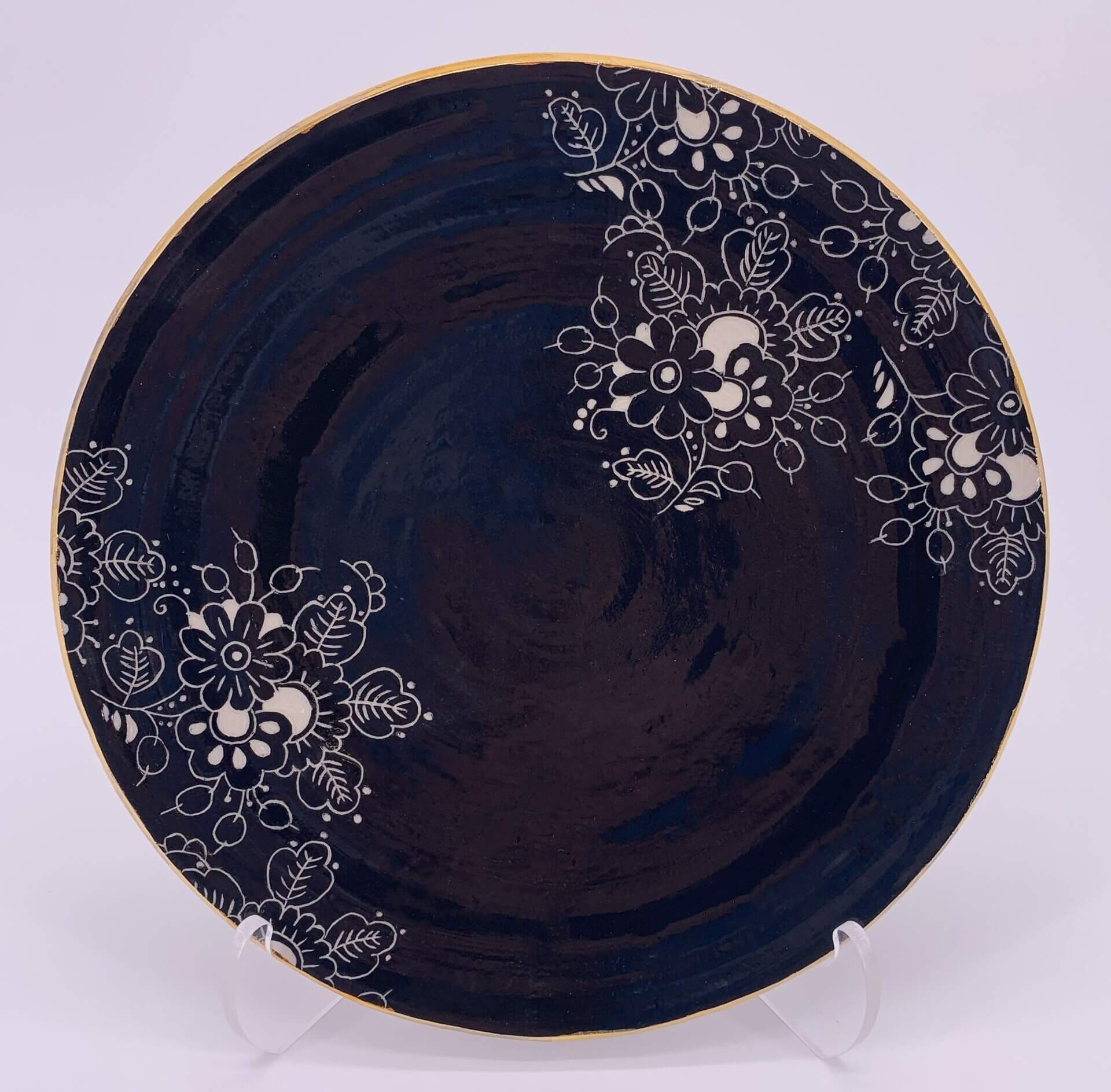 Madeleine Althoff creates refined ceramic works that blend history, identity, and personal reflection. Working primarily with porcelain, she uses labor-intensive sgraffito techniques to carve intricate designs inspired by ancestral textiles and patterns, finishing each piece with delicate gold luster. Madeleine finds grounding and meaning through the thoughtful, methodical nature of her process. Research, repetition, and intentional detail allow her to channel both creativity and care into each object. She describes her work as a self-portrait, representing the intertwining of family through generations and cultures coming together over time. Madeleine’s ceramics invite viewers to look closely, honoring both elegance and vulnerability. Through her work, she reflects how art can hold memory, resilience, and personal history all at once.