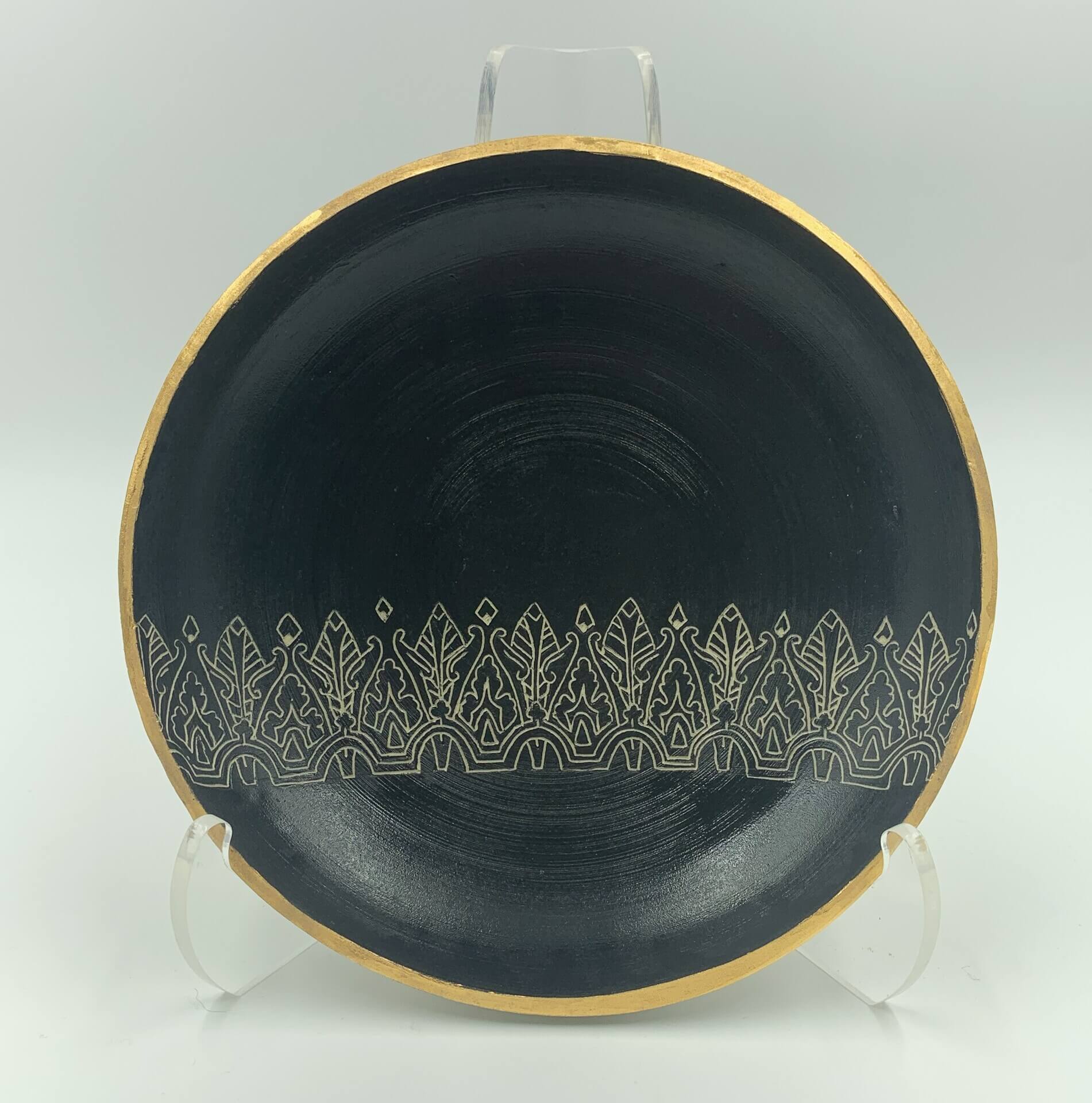 Madeleine Althoff creates refined ceramic works that blend history, identity, and personal reflection. Working primarily with porcelain, she uses labor-intensive sgraffito techniques to carve intricate designs inspired by ancestral textiles and patterns, finishing each piece with delicate gold luster. Madeleine finds grounding and meaning through the thoughtful, methodical nature of her process. Research, repetition, and intentional detail allow her to channel both creativity and care into each object. She describes her work as a self-portrait, representing the intertwining of family through generations and cultures coming together over time. Madeleine’s ceramics invite viewers to look closely, honoring both elegance and vulnerability. Through her work, she reflects how art can hold memory, resilience, and personal history all at once.