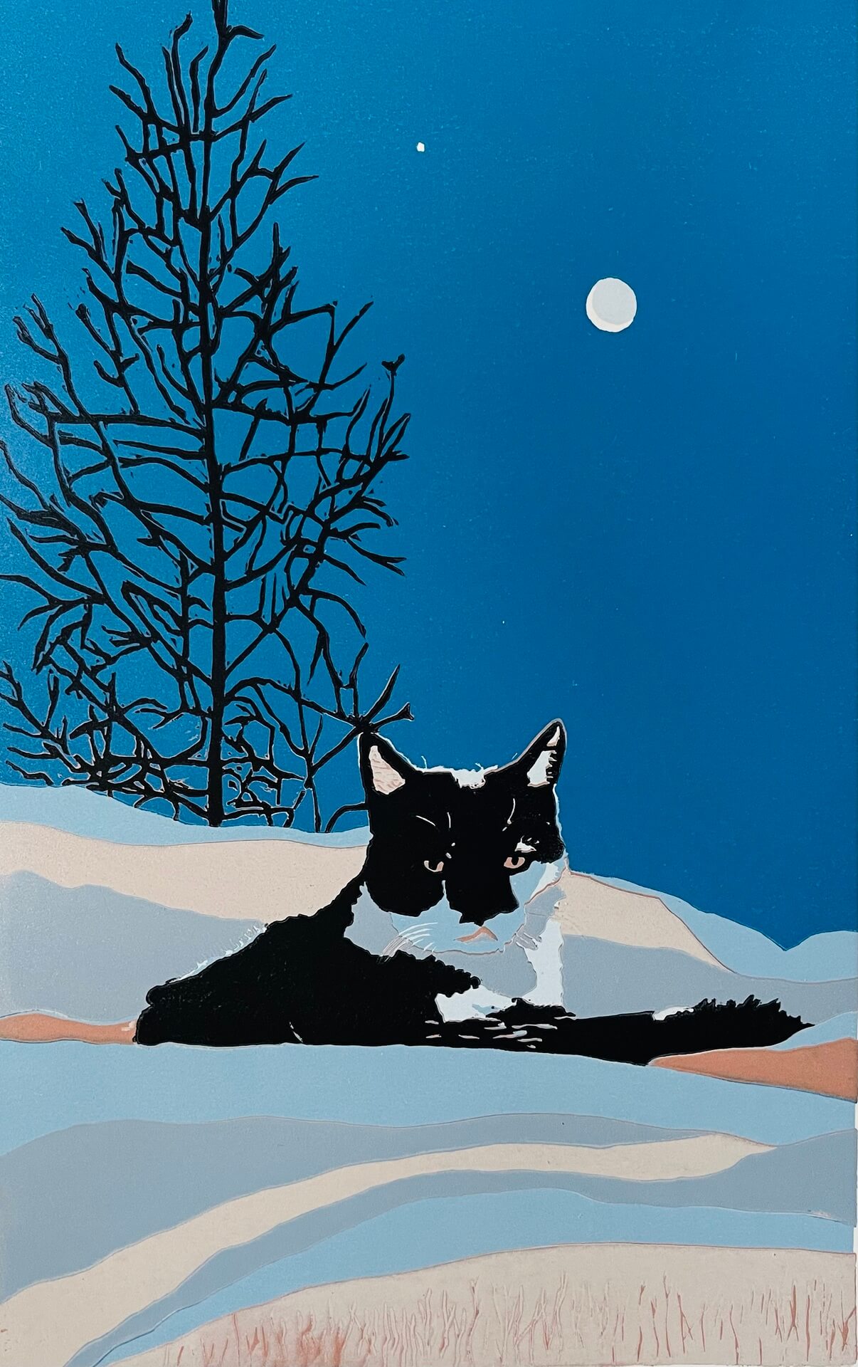 Jace Laakso is a printmaker and sculptor specializing in reduction relief linoleum printing. A polio survivor with limited mobility, Jace has sustained a long and dedicated creative practice shaped by patience, planning, and close attention to process. Working from a single block over multiple stages requires trust in both material and method, allowing images to develop gradually through light, shadow, and form. Landscapes and architectural elements often emerge through careful layering, encouraging quiet observation. After surviving polio as an infant, art remains a way to connect with others and share a sense of place. Jace’s work reflects commitment to craft and the belief that creativity can remain steady and expansive over time.