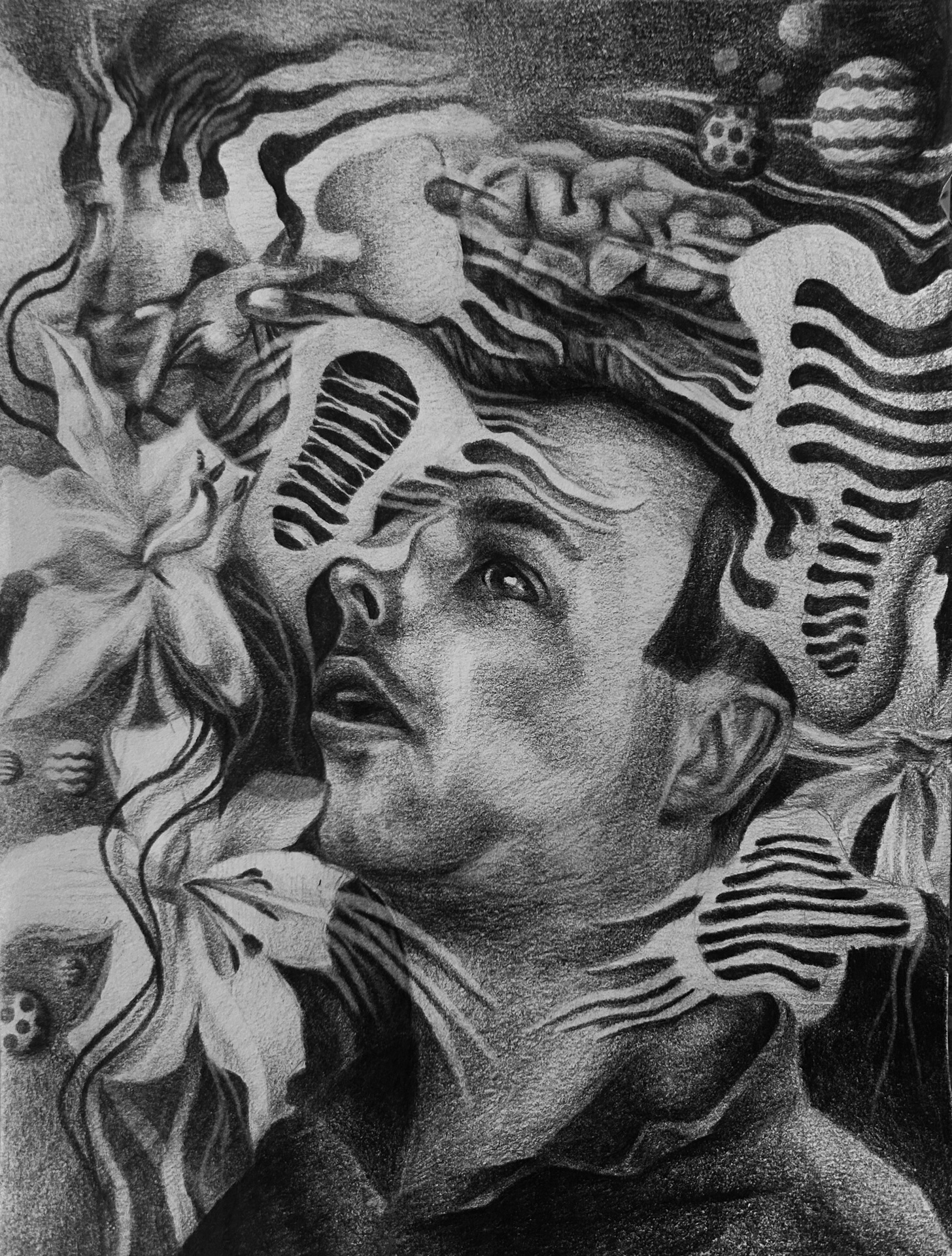 Matthew Malkowski is a mixed media artist whose work explores the internal structures that shape thought, memory, and identity. Drawing directly from lived experience with obsessive‑compulsive disorder, anxiety, art becomes a way to make visible what is often carried internally. Through drawing, painting, and constructed forms, layered imagery reflects repetition, fragmentation, and adaptation. Creating offers a language for experiences that resist straightforward explanation, giving space for reflection and clarity. Each piece emerges through focus and patience, allowing personal experience to take physical form. Matthew’s work invites viewers to consider the complexity of the mind with empathy, emphasizing that creative expression can be both revealing and grounding.