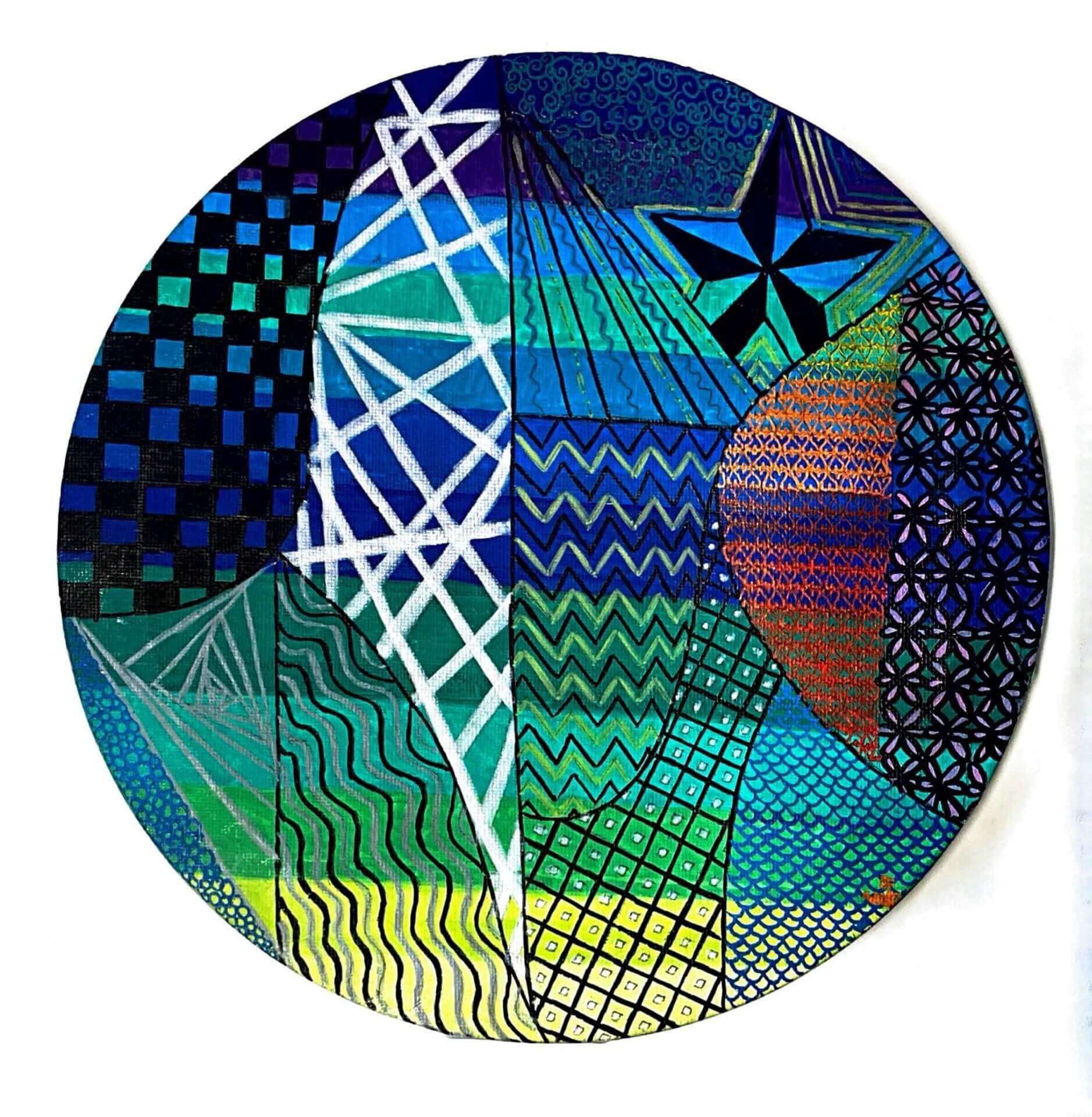 Samantha Frank has been drawn to art since childhood, finding comfort in repetition, pattern, and the act of making. Working primarily with acrylics, oils, and drawing tools, Samantha creates work as a form of relaxation and healing. Art has become an important way to calm the mind and regain focus. Repeating shapes and building patterns provides structure without rigidity, allowing creativity to feel safe and steady. Learning from others’ work while honoring personal differences remains an intentional part of the process. Art offers meaning, connection, and a sense of accomplishment, reminding Samantha that creative expression can be valuable both to the maker and to those who encounter the finished piece.