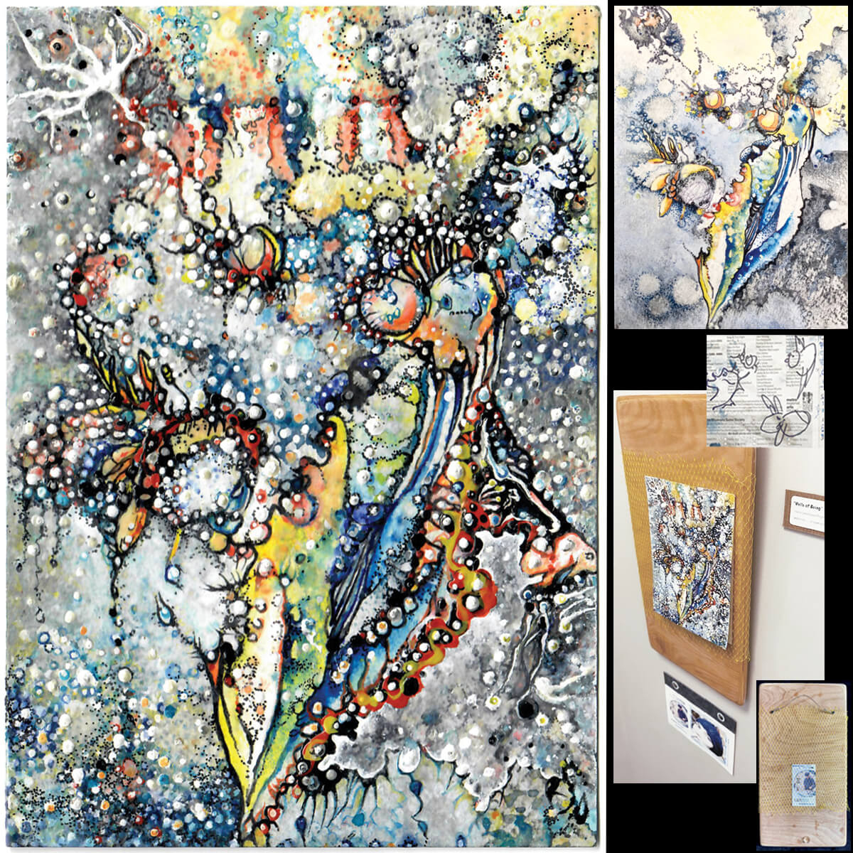Rebecca Schneider Doyle creates layered, contemplative work that grows from an awareness of inner light, perception, and connection. Recognizing that this inner light moves through a neurodivergent spectrum brought both challenge and insight, opening ways of seeing that are rich with pattern, sensitivity, and meaning. Rebecca’s creative process is driven by the interplay of line, color, and texture, forming a steady flow state that brings calm and joy. Each work functions as an exploratory exercise, moving through emotional, perceptual, and expressive landscapes while honoring detail and the seemingly random stories that emerge along the way. Nature remains a constant reference point, offering structure, rhythm, and reminder as observations are gathered and time is gently recorded. Using found and rescued materials, Rebecca layers ideas and relationships with care, believing creativity can help stitch compassion, understanding, and regeneration back into a shared collective space.
